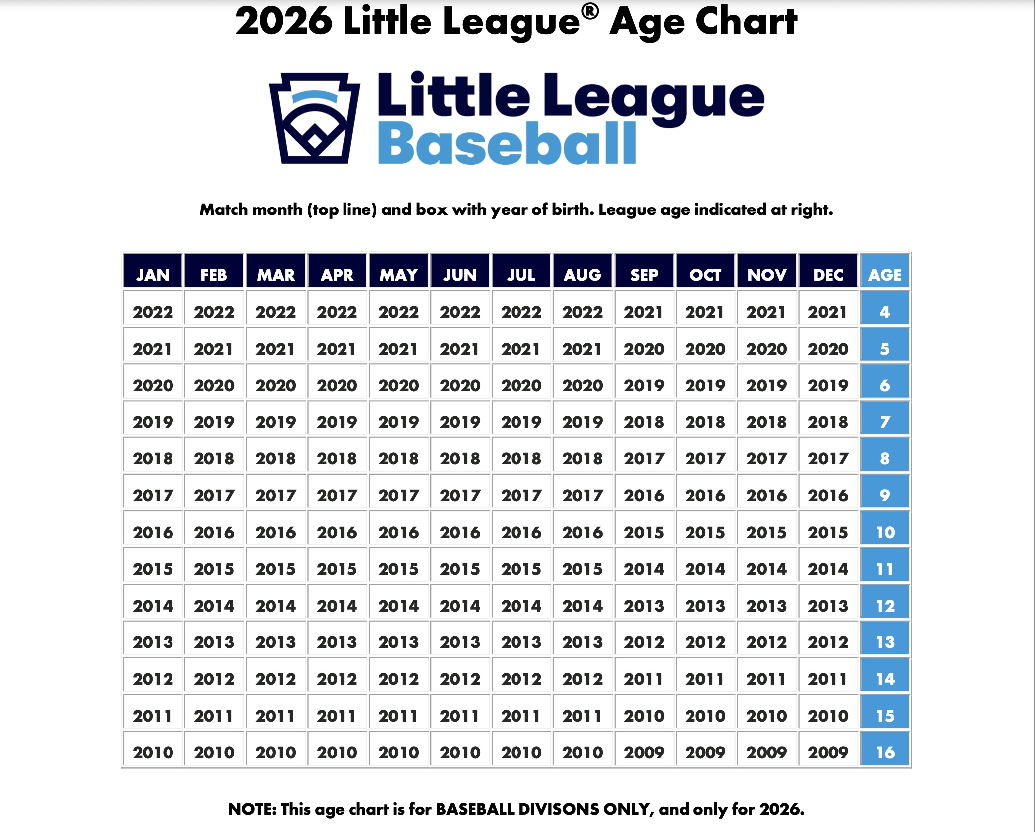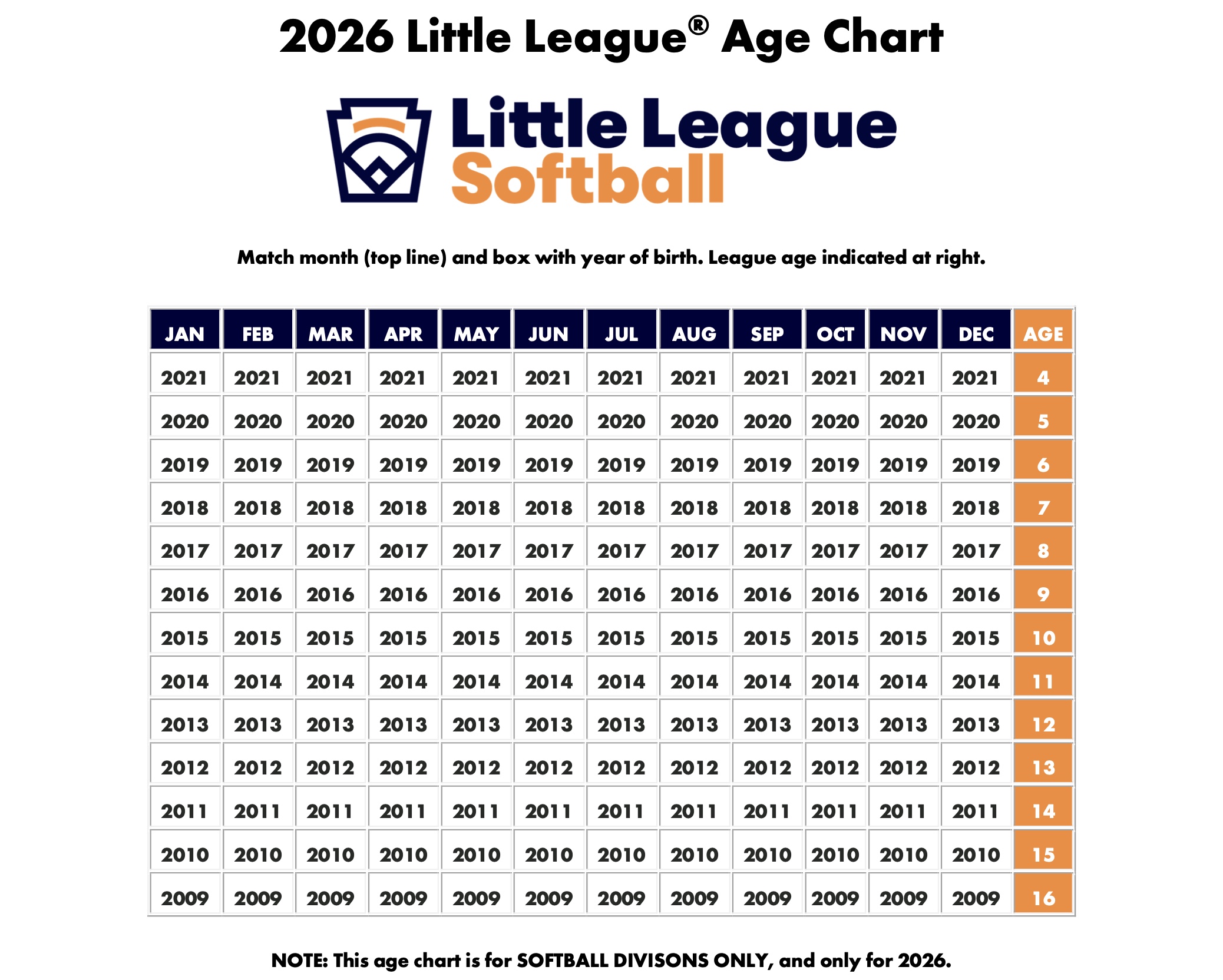 League Age Chart & Age Calculator